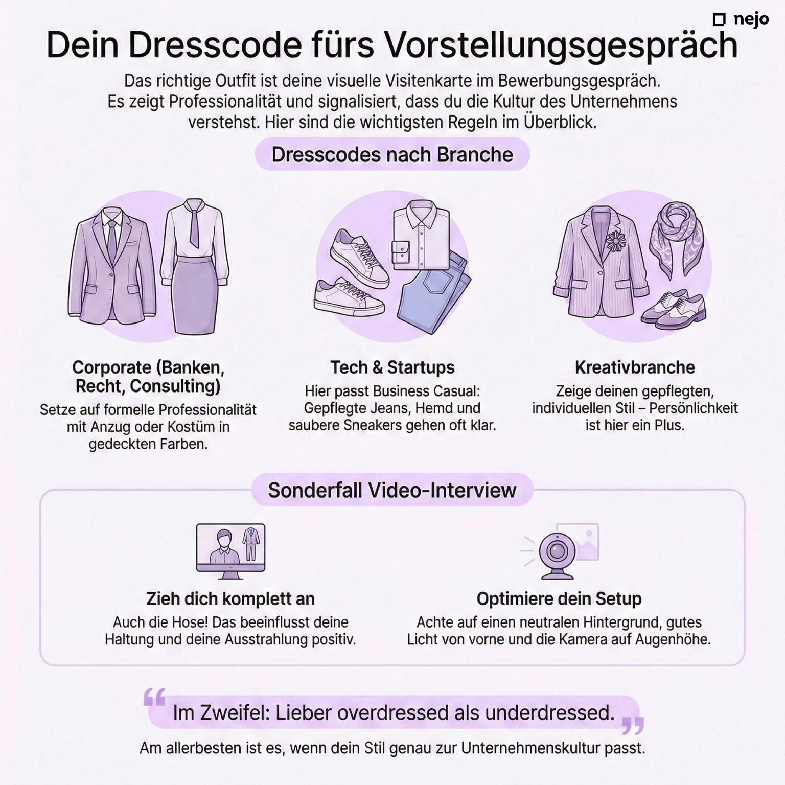 Detaillierte Outfit-Tipps nach Branche, Farben und Budget haben wir in einem eigenen Guide zusammengestellt.