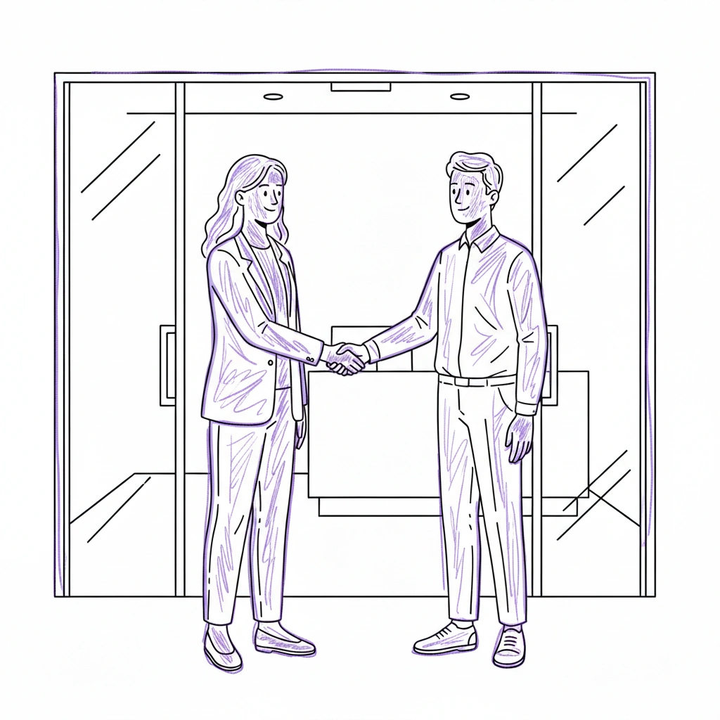 Händedruck: Fest, aber nicht zerquetschend. Eine Sekunde halten, Augenkontakt dabei.