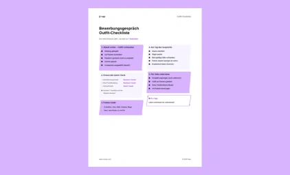 Alle Dresscode-Regeln aus diesem Artikel auf einer Seite – speicher dir die Checkliste auf dem Handy und check dein Outfit kurz vor dem Gespräch.