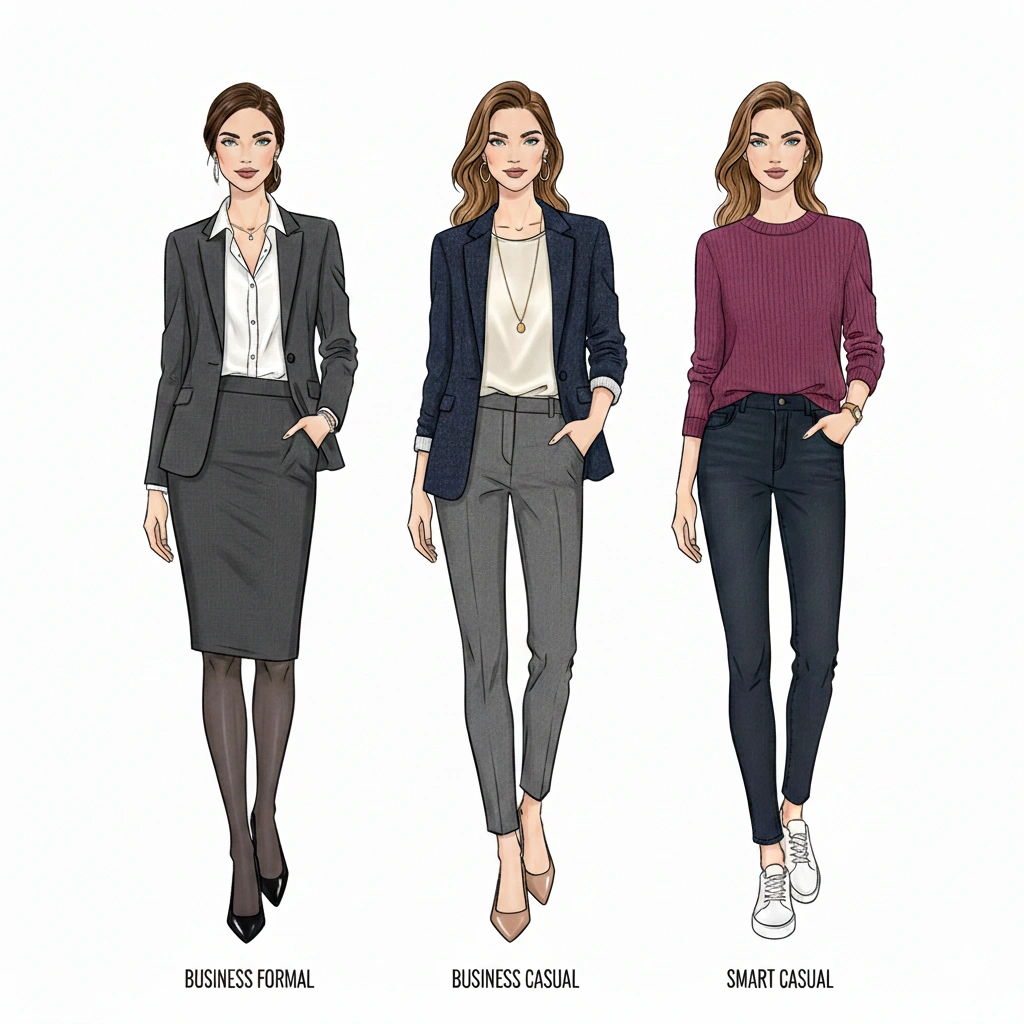 Dresscode Vergleich: Business Formal, Business Casual und Smart Casual Outfits für Damen
