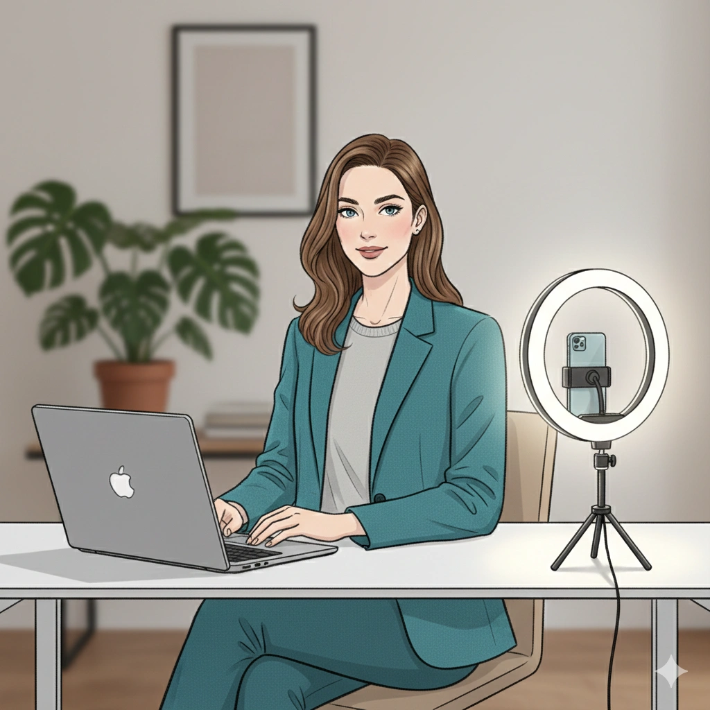 Video-Interview Outfit mit professionellem Hintergrund und Beleuchtung